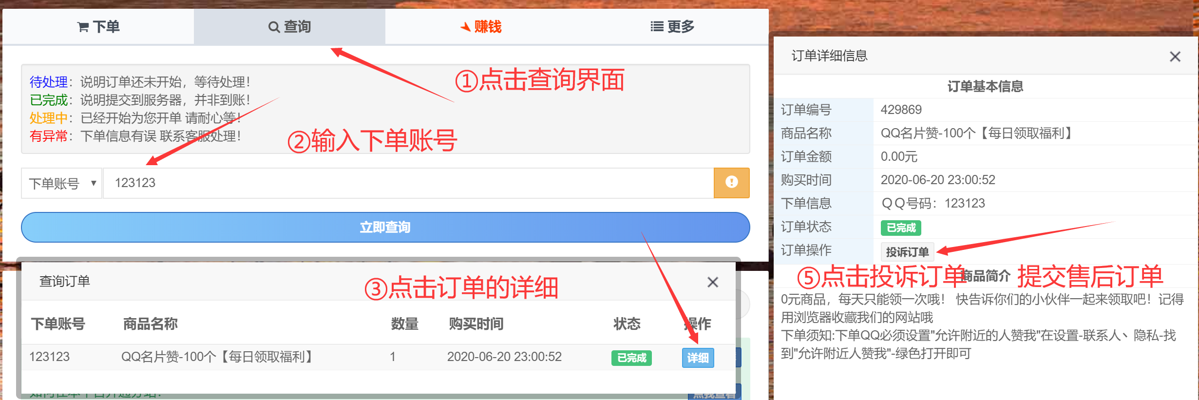 ⑤点击投诉订单(提交售后订单)